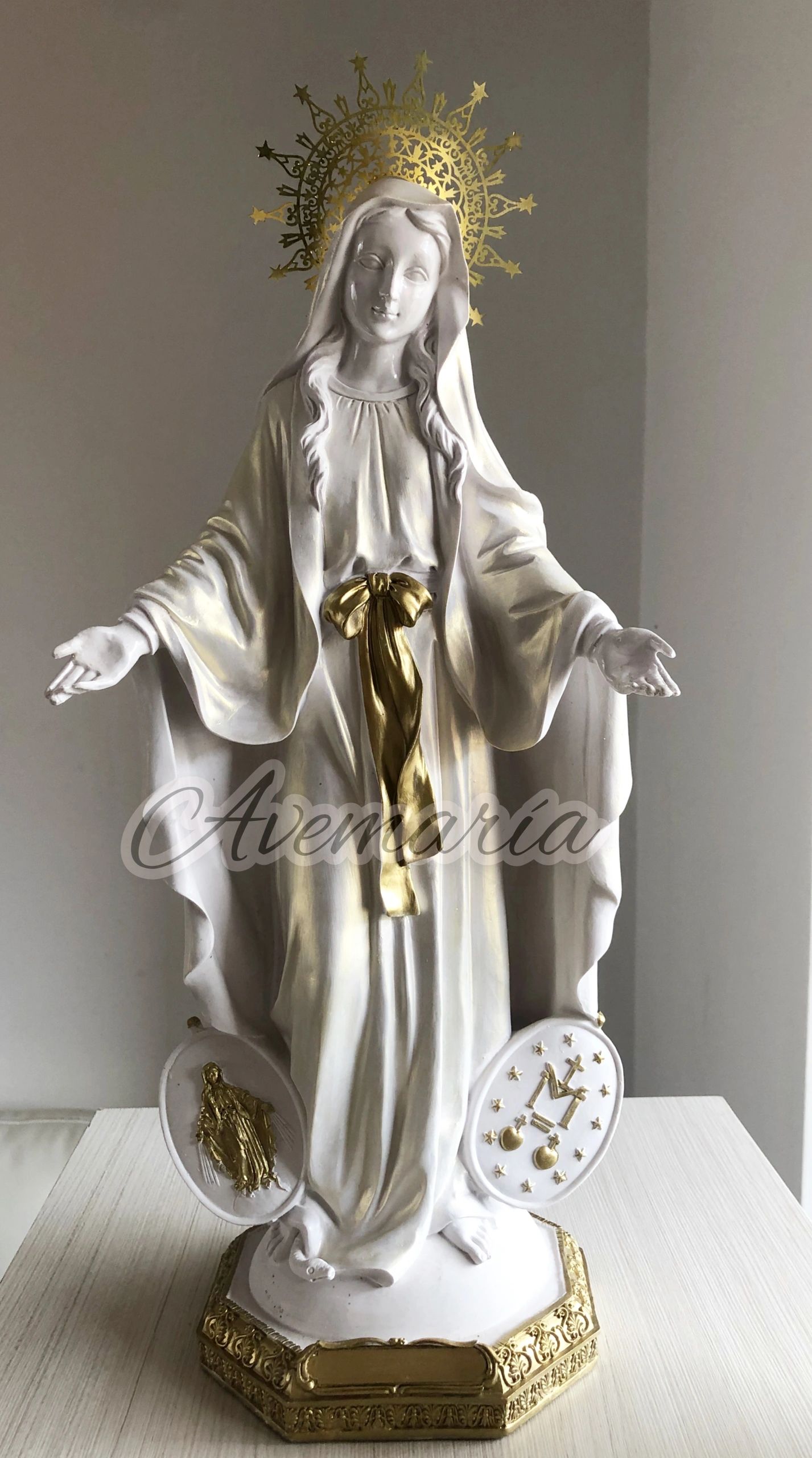 Virgen de la Medalla Milagrosa. Elaborada en resina, pintada a mano. Tamaño 30 cms $125.000 COP- Corona $20.000 adicionales